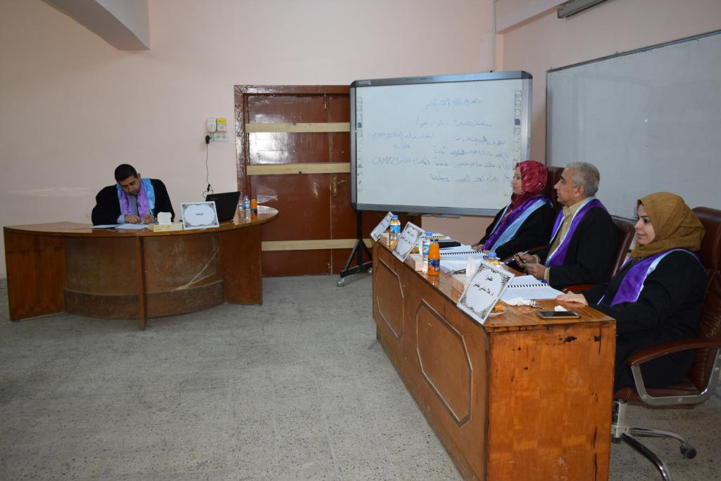 ضمن الانشطة العلمية لقسم العلوم المالية والمصرفية تمت مناقشة بحث الدبلوم العالي في العلوم المالية للطالب ( بدر وليد بدر ) الموسومة ( اختبار سلامة القطاع المصرفي التجاري CAMELS بأستخدام نظام )وذلك يوم الثلاثاء الموافق 2019/12/28، وتألفت لجنة المناقشة من السادة المدرجة اسمائهم ادناهًأ.م. د بشار ذنون الشكرجي ….. رئيسا