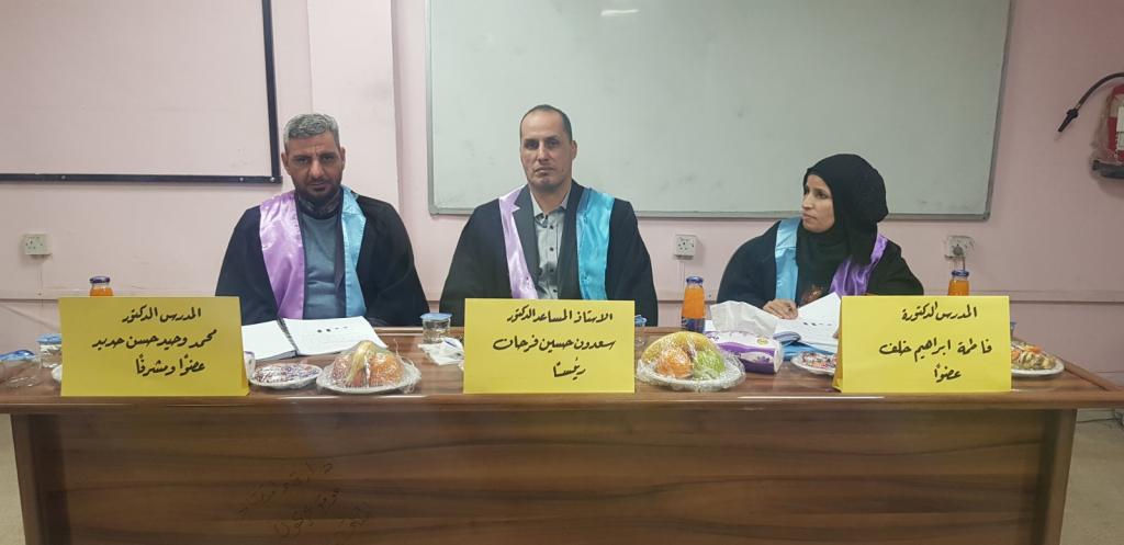 تم بعون الله تعالى مناقشة رسالة الدبلوم العالي في قسم الاقتصاد الموسومة ( تقييم كفاءة الأداء بعض المدارس المسائية في محافظة كركوك ) للطالب ( يونس حسين علاوي ) يوم الاربعاء الموافق ١١ / ١٢ / ٢٠١٩ احد طلبة قسم الاقتصاد في برنامج الدبلوم العالي وتألفت لجنة المناقشة من السادة التدريسيين