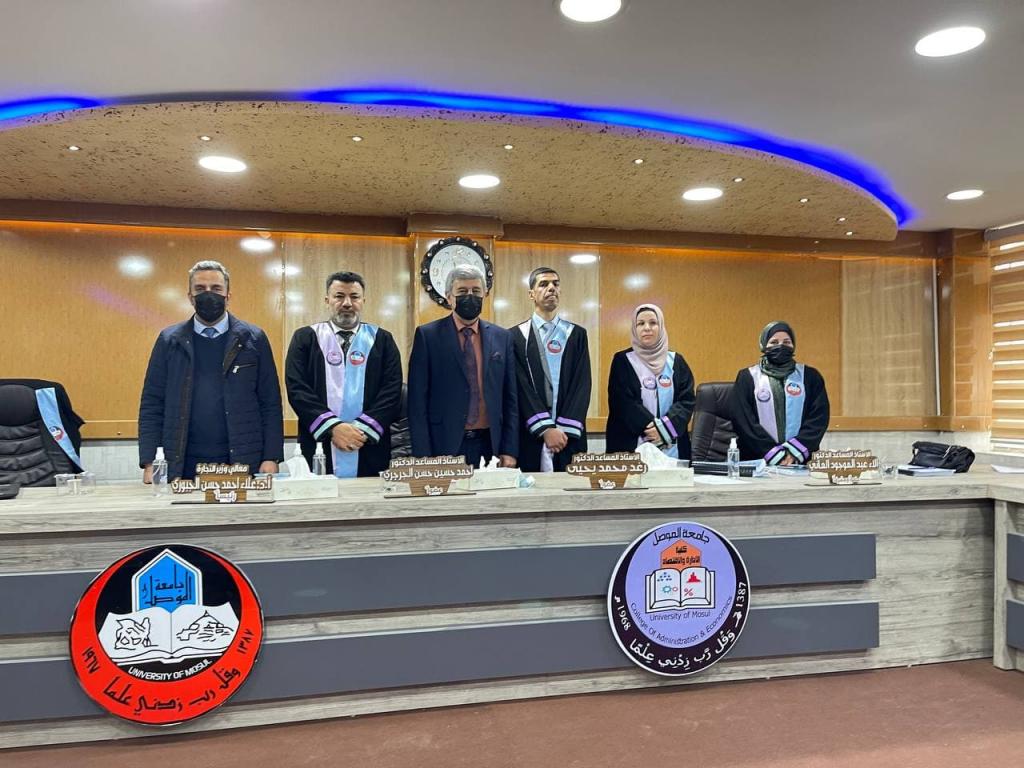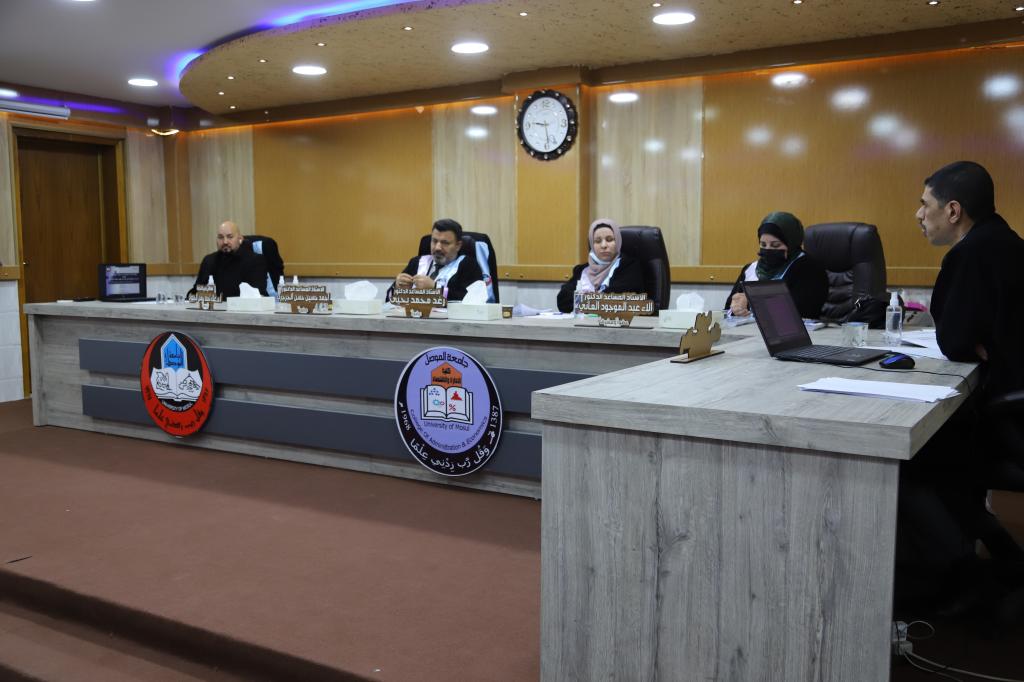 ناقش قسم إدارة الاعمال في كلية الإدارة والاقتصاد بجامعة الموصل رسالة الماجستير الموسومة ” توظيف الذكاء الاجتماعي في مواجهة سلوك العمل العكسي دراسة استطلاعية في عينة من كليات جامعة الموصل ”