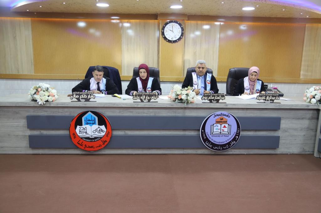 مناقشة رسالة ماجستير في قسم ادارة التسويق الموسومة ” امكانية تعزيز جودة الخدمة المصرفية الالكترونية في ضوء تبني التسويق الرقمي دراسة ميدانية في منافذ الكي كارد في محافظة الانبار في يوم الخميس 27 نيسان 2022