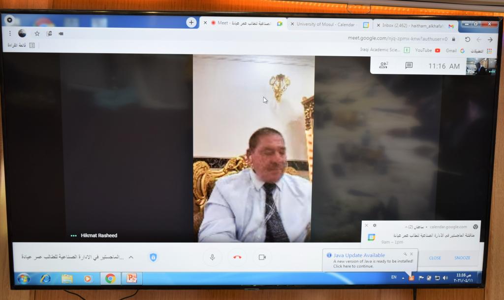 مناقشة رسالة ماجستير في قسم الادارة الصناعية