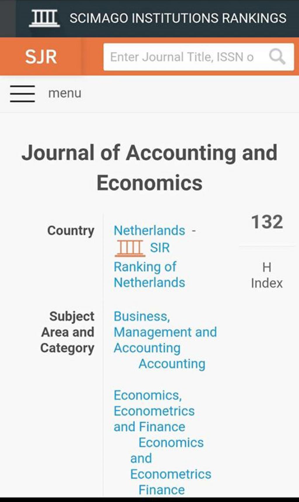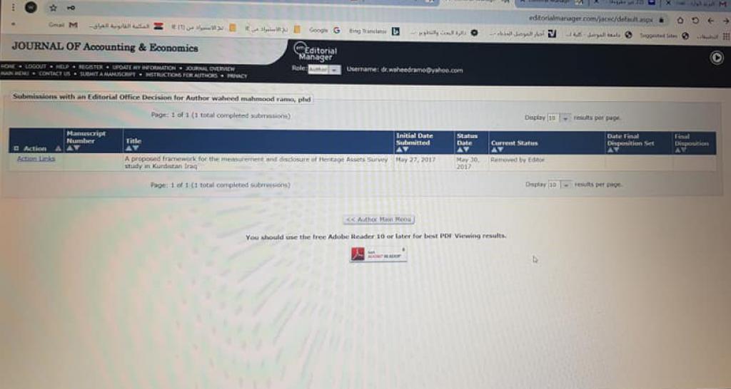 نشر بحث للاستاذ المساعد الدكتور وحيد محمود رمو في المجلة العالمية Journal of accounting & Economics