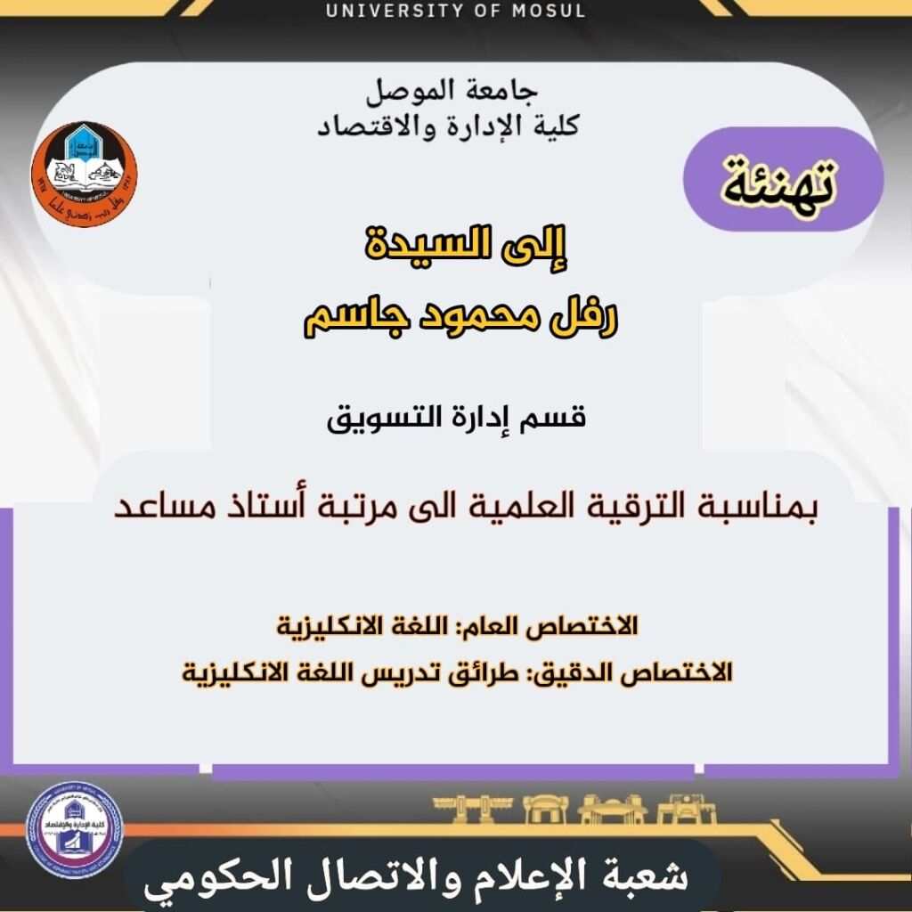 ✺ إنجاز بحثي متميز يعزّز رصيد التميّز العلمي في كلية الإدارة والاقتصاد – جامعة الموصل ✺