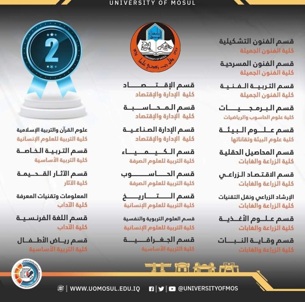 الاقسام التي حصلت على المركز الاول في كلية الادارة والاقتصاد / جامعة الموصل