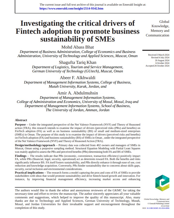 ✺ إنجاز بحثي متميز يعزّز رصيد التميّز العلمي في كلية الإدارة والاقتصاد – جامعة الموصل ✺