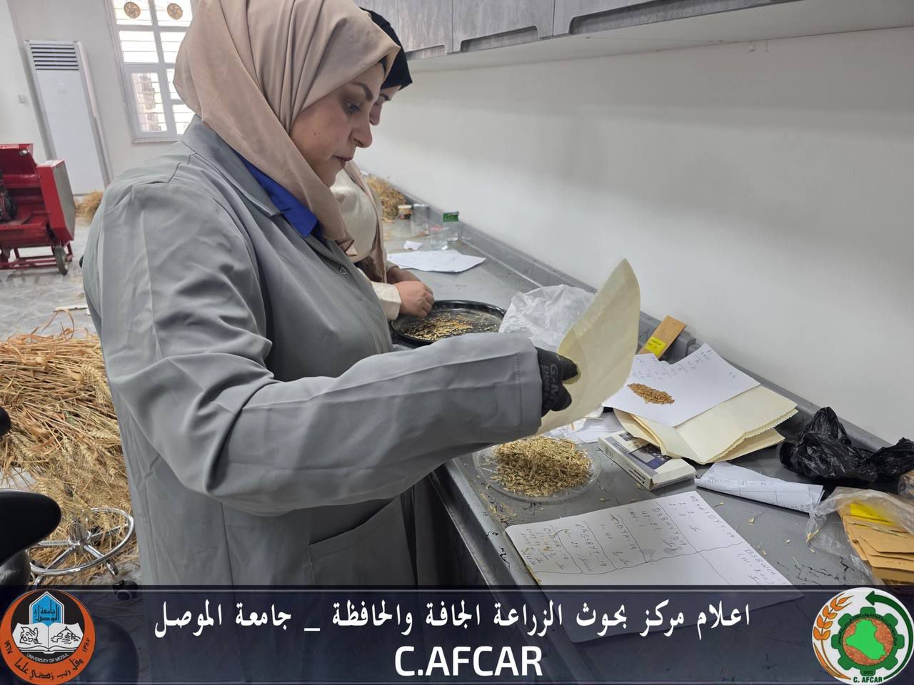قسم المصادر الوراثية في مركز بحوث الزراعة الجافة والحافظة يجري قياسات دقيقة لأصناف الحنطة لأغراض البحث العلمي