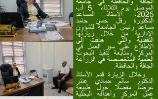 زيارة تفقدية لمساعد رئيس الجامعة للشؤون الإدارية إلى مركز بحوث الزراعة الجافة والحافظة.