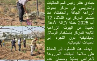 فريق من الباحثين والمهندسين الزراعين في مركز بحوث الزراعة الجافة والحافظة ينفذ حملة تعشيب متكاملة .