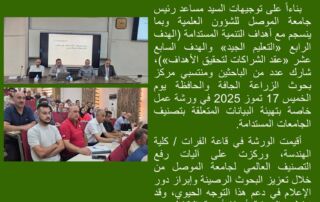 مركز بحوث الزراعة الجافة والحافظة يشارك في ورشة عمل لتعزيز تصنيف جامعة الموصل ضمن الجامعات المستدامة.