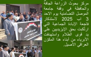 يتقدم مركز بحوث الزراعة الجافة والحافظة ممثلاً بالاستاذ الدكتور عبدالستار اسمير الرجبو مدير المركز بخالص التعازي والمؤاساة الى اهالي مدينة الكوت عامة ولاسر الضحايا خاصة في مصابهم الجلل جراء كارثة حريق مبنى الهايبر ماركت [إقرأ المزيد]