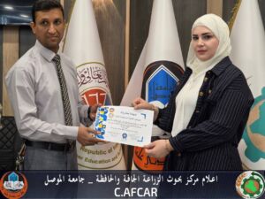 شهادة تقديرية مقدمة الى كادر مركز بحوث الزراعة الجافة والحافظة .