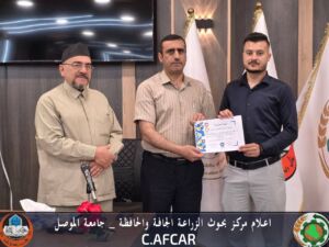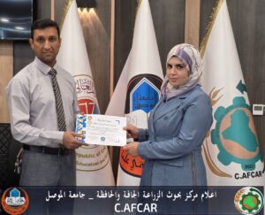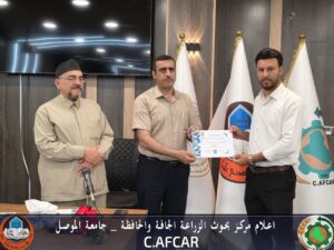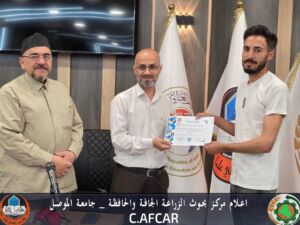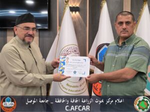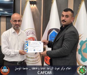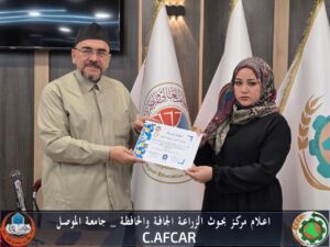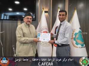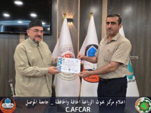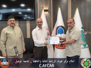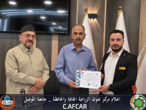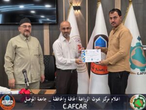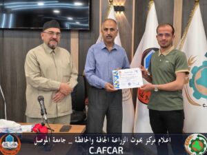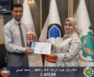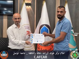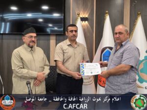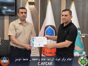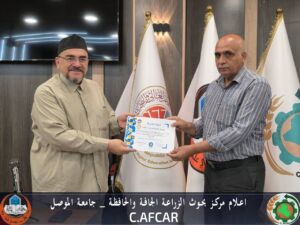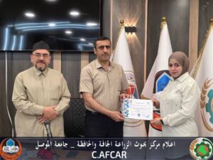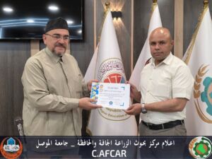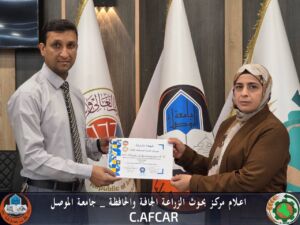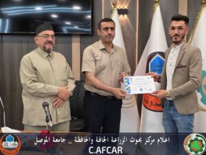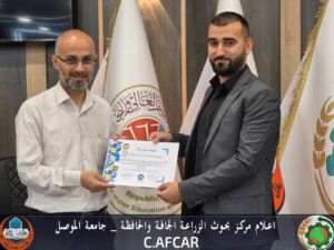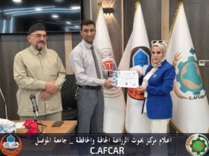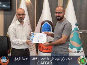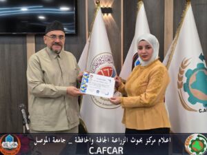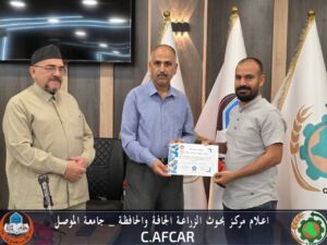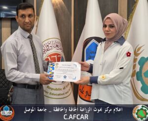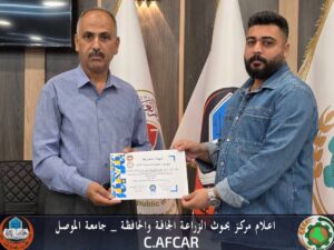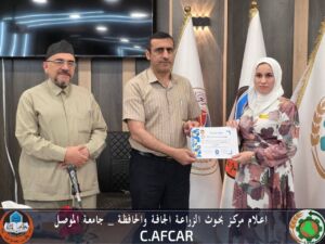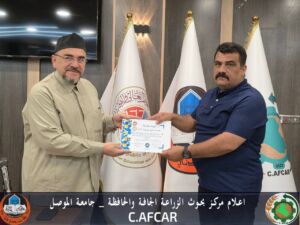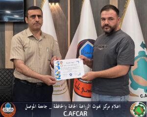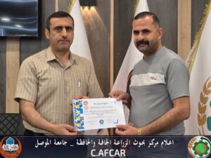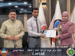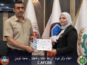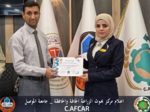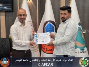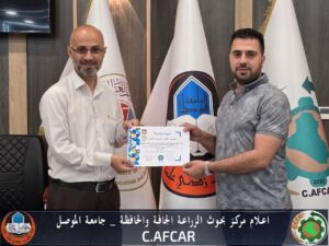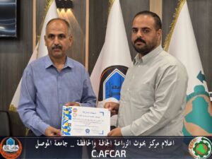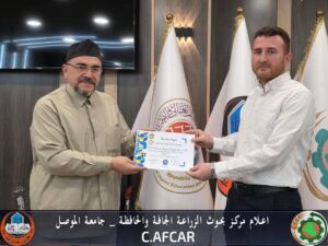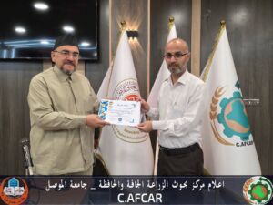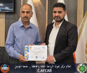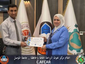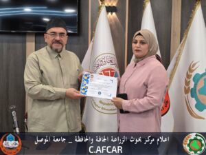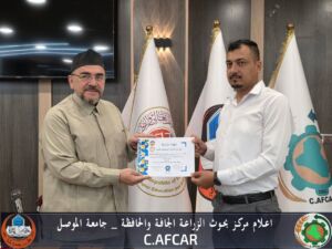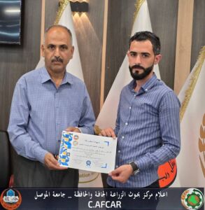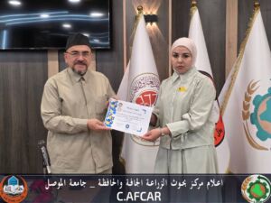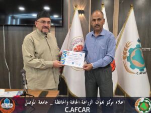 شهادة تقديرية مقدمة الى كادر مركز بحوث الزراعة الجافة والحافظة .