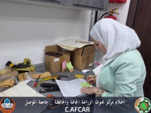 قسم المصادر الوراثية في مركز بحوث الزراعة الجافة والحافظة يجري قياسات دقيقة لأصناف الحنطة لأغراض البحث العلمي