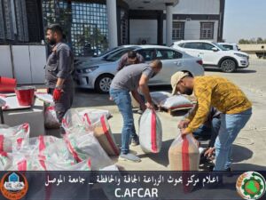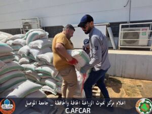وبعد انجاز دائرة الاعمار والمشاريع في جامعة الموصل مقاولة صب الارضيات لكلا المخزنين واعادة نصبهما قامت مجموعة من شباب المركز بعمل استثنائي وتطوعي باعادة اكداس الحنطة المذكورة انفا الى المخازن لمدة ثلاث ايام متتالية انتهت اليوم 21 ايار 2025، وقد عبر الاستاذ الدكتور عبدالستار اسمير الرجبو مدير المركز عن شكره وتقديره لهذه المجموعة الطيبة من شباب المركز ومنحهم كتاب شكر وتقدير لجهودهم في عملية اعادة تكييس و نقل مخزون الحنطة الى المخازن وترتيبها حسب الاصناف.