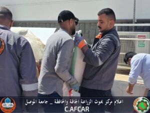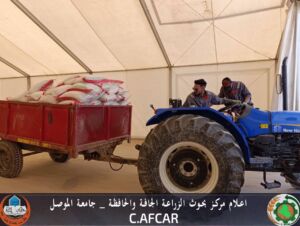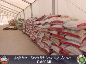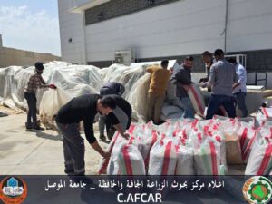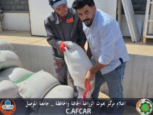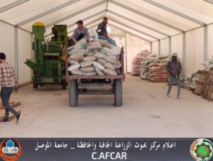 بعد ان تم الحصول على موافقة رئاسة الجامعة لصب ارضية المخزنين الكائنين خلف بناية مركز بحوث الزراعة الجافة والحافظة تم نقل 45 طن من بذور الحنطة الى موقع بديل جوار المركز بجهود ذاتية تطوعية من شباب المركز .