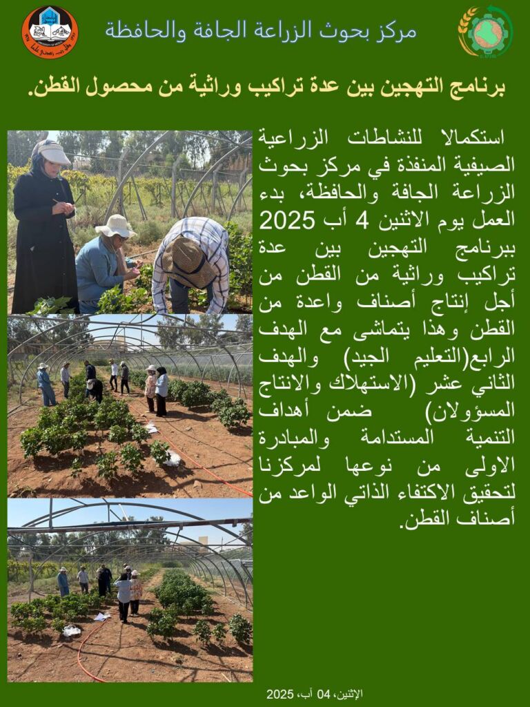 برنامج التهجين بين عدة تراكيب وراثية من محصول القطن.