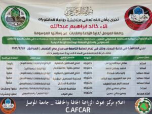 تدريسي من مركز بحوث الزراعة الجافة والحافظة يشرف على مناقشة اطروحة دكتوراه.