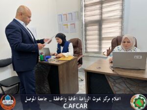 ضمن سعي مركز بحوث الزراعة الجافة والحافظة في جامعة الموصل لتعزيز كفاءة الأداء العلمي والبحثي، أجرت كاميرا إعلام المركز يوم الاحد 2 تشرين الثاني 2025 جولة ميدانية في الشؤون العلمية، للاطلاع على سير العمل والمهام التي تنفذها بإشراف المدرس الدكتور عدنان عبد احمد مسؤول الشؤون العلمية.