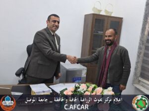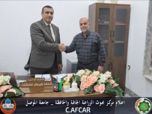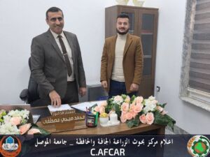 بتاريخ 25 تشرين الثاني 2025 قدم كافة منتسبي مركز بحوث الزراعة الجافة والحافظة في جامعة الموصل، من باحثين وإداريين وفنيين، أحر التهاني وأصدق التبريكات إلى الأستاذ الدكتور محمد صبحي الطويل بمناسبة تكليفه بمنصب مدير المركز.