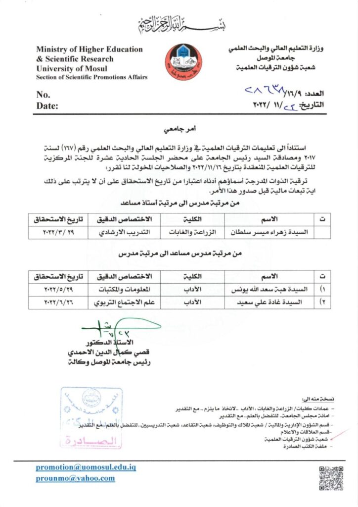عميد كلية الزراعة والغابات / جامعة الموصل