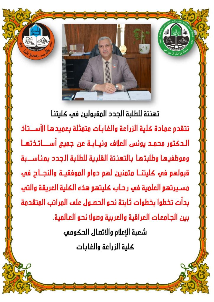 تهنئة للطلبة الجدد المقبولين في كليتنا.