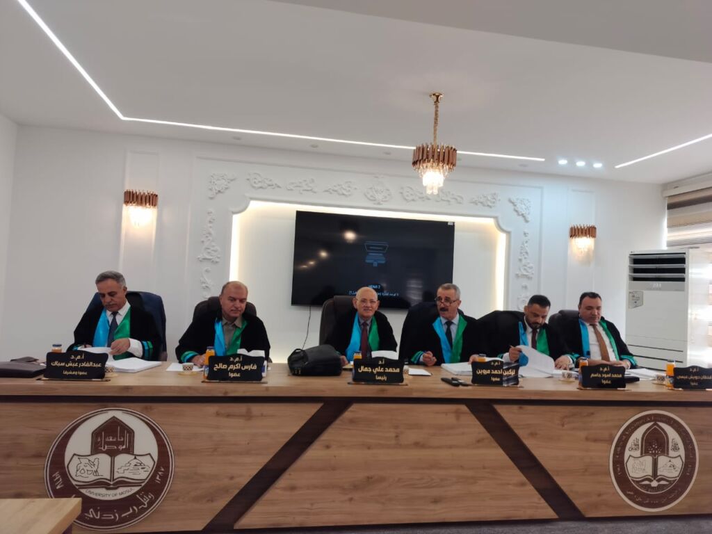 وقد ترأس لجنة المناقشة الاستاذ الدكتور مزهر كاظم كعيبر وعضوية كل من الاستاذ الدكتور خالد حساني سلطان والأستاذ المساعد الدكتور صفوان لقمان شهاب وبإشراف كل من الأستاذ الدكتور عمر ضياء الملاح والأستاذ المساعد الدكتور محمد سالم ابراهيم.