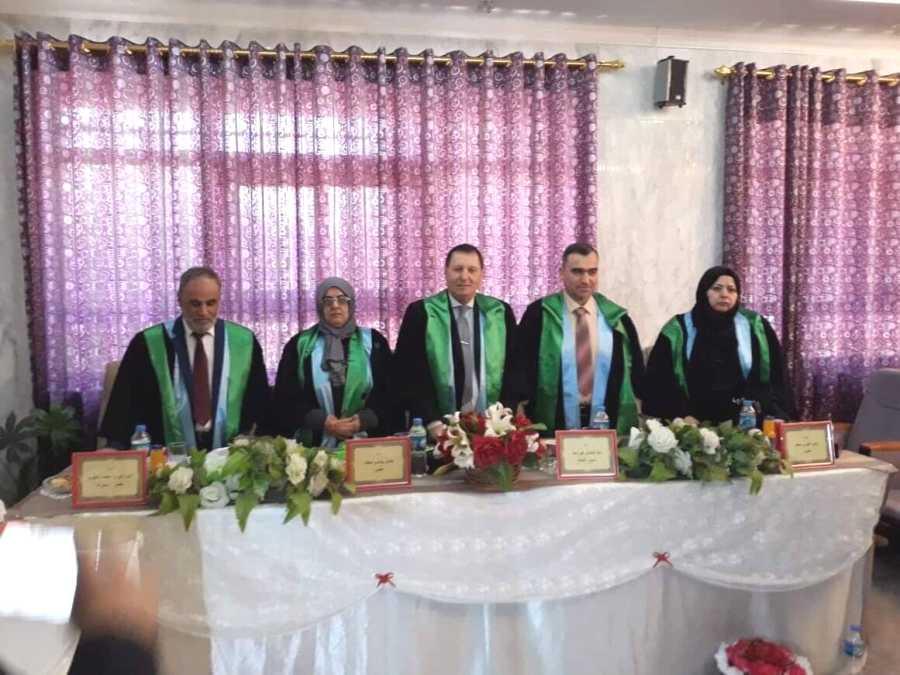 بحضور السيد عميد الكلية الدكتور سهل كوكب الجميل ومعاونه للشؤون الادارية الدكتور فراس كاظم الجبوري نوقشت في قسم الغابات في كليتنا رسالة ماجستير لطالب الدراسات العليا مهند حامد يونس عن رسالته الموسومة (تاثير مستخلصات قلف واوراق اشجار اليوكالبتوس في نمو فطريات اعفان جذور شتلات الصنوبر البروتي والثويا الشرقية من خلال بعض صفات النمو) وقد تألفت لجنة مناقشة الطالب من السادة:أ. د. اياد جاجان خورشيد / كيمياء نواتج طبيعية / كلية التربية للبنات – جامعة الموصل / رئيسا.أ.د. نضال يونس محمد / امراض نبات / كلية الزراعة والغابات – جامعة الموصل / عضوا.أ.م.د. زينب عليوي محمد / امراض نبات / كلية الزراعة – جامعة كربلاء / عضوا .أ.م. د. انور نوري محمد / امراض نبات / كلية الزراعة والغابات – جامعة الموصل / عضوا ومشرفا.وبعد مناقشة الطالب لرسالته اوصت اللجنة بمنحه شهادة الماجستير.إدارة موقع الكلية تبارك للطالب حصوله على الشهادة متمنين له التوفيق والنجاح في حياته العلمية والعملية.