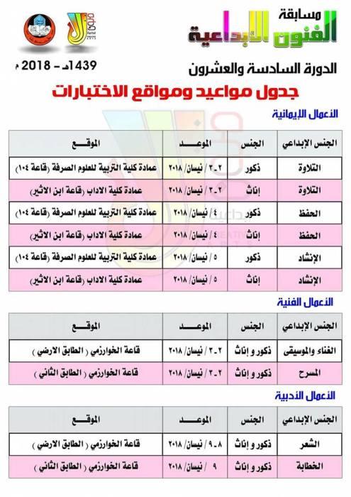 إعلان لمواعيد ومواقع اختبارات مسابقة الفنون الابداعية التي تقيمها جامعة الموصل