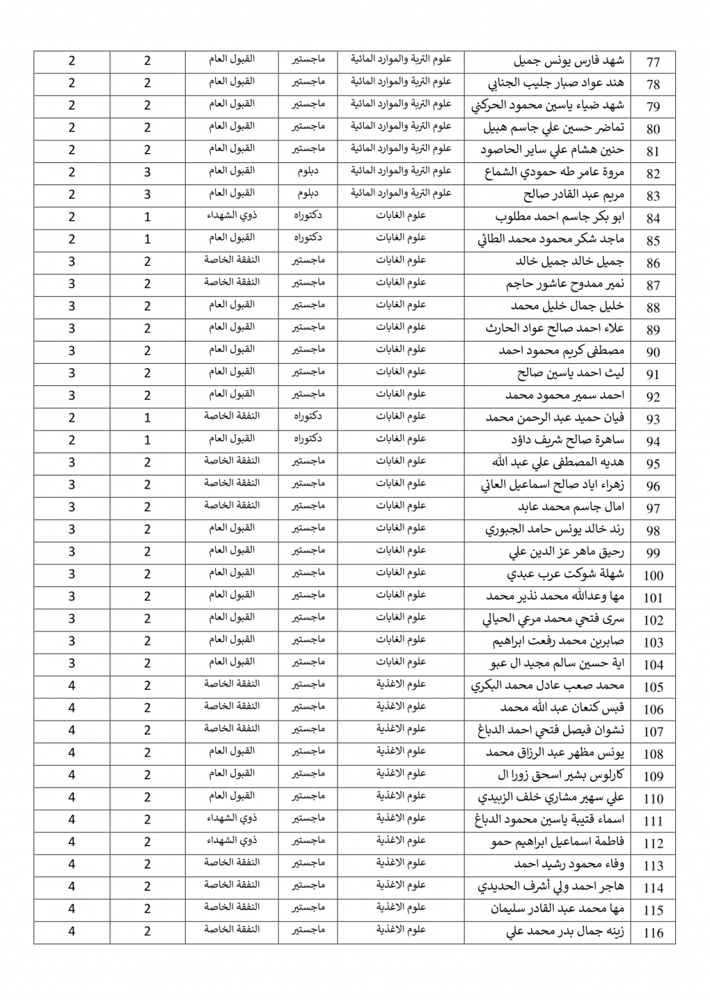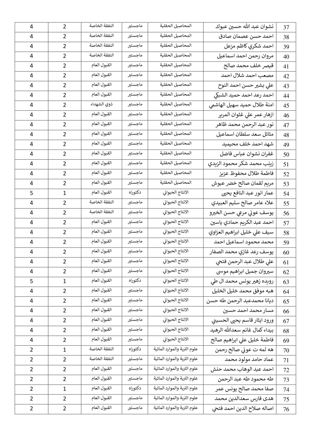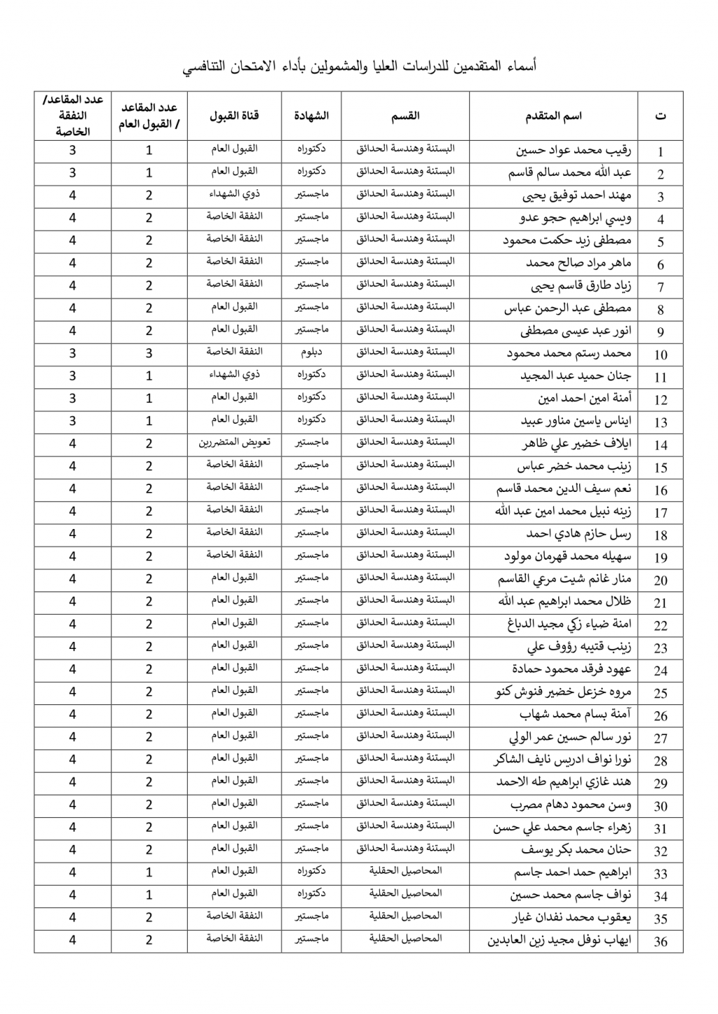 اسماء الطلبة المشمولين بأداء الامتحان التنافسي للقبول في الدراسات العليا