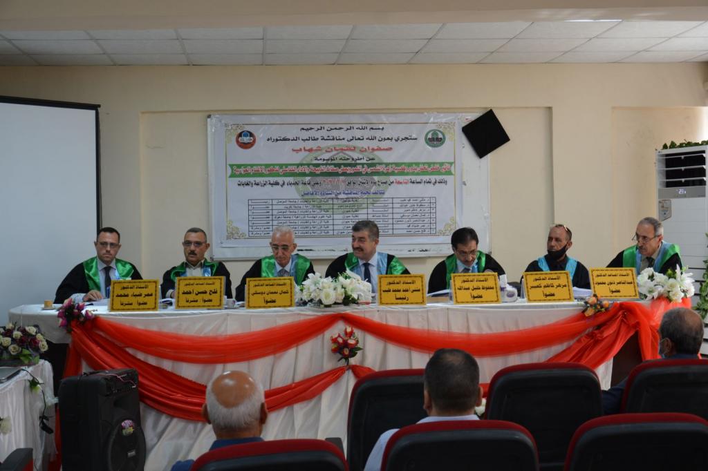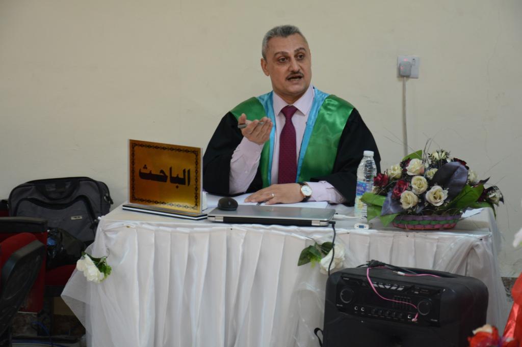 وقد ترأس لجنة المناقشة الأستاذ الدكتور مثنى احمد محمد طيب وعضوية كل من الأستاذ الدكتور محفوظ خليل عبدالله والأستاذ الدكتور مزهر كاظم كعيبر والدكتور كمال نعمان دوسكي والدكتور عبد الناصر ذنون والأستاذ الدكتور عمر ضياء محمد مشرفاً والدكتور فلح حسن احمد مشرفاً