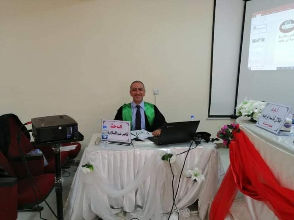 وقد تألفت لجنة المناقشة من الأستاذ الدكتور معاذ عبدالله الحجار رئيساً وعضوية كل من الأستاذ الدكتور شاهين عباس مصطفى والاستاذ المساعد الدكتور احمد سعيد عبد الله والاستاذ المساعد الدكتورة جهان يحي قاسم والاستاذ الدكتور اياد جاجان خورشيد مشرفاً والاستاذ المساعد الدكتور طلال قاسم ابراهيم مشرفاً . وبعد مناقشة مستفيضة تم قبول الاطروحة بعد اجراء التعديلات التي اقرتها اللجنة ومنح الطالب شهادة الدكتوراه بتقدير مستوفي.