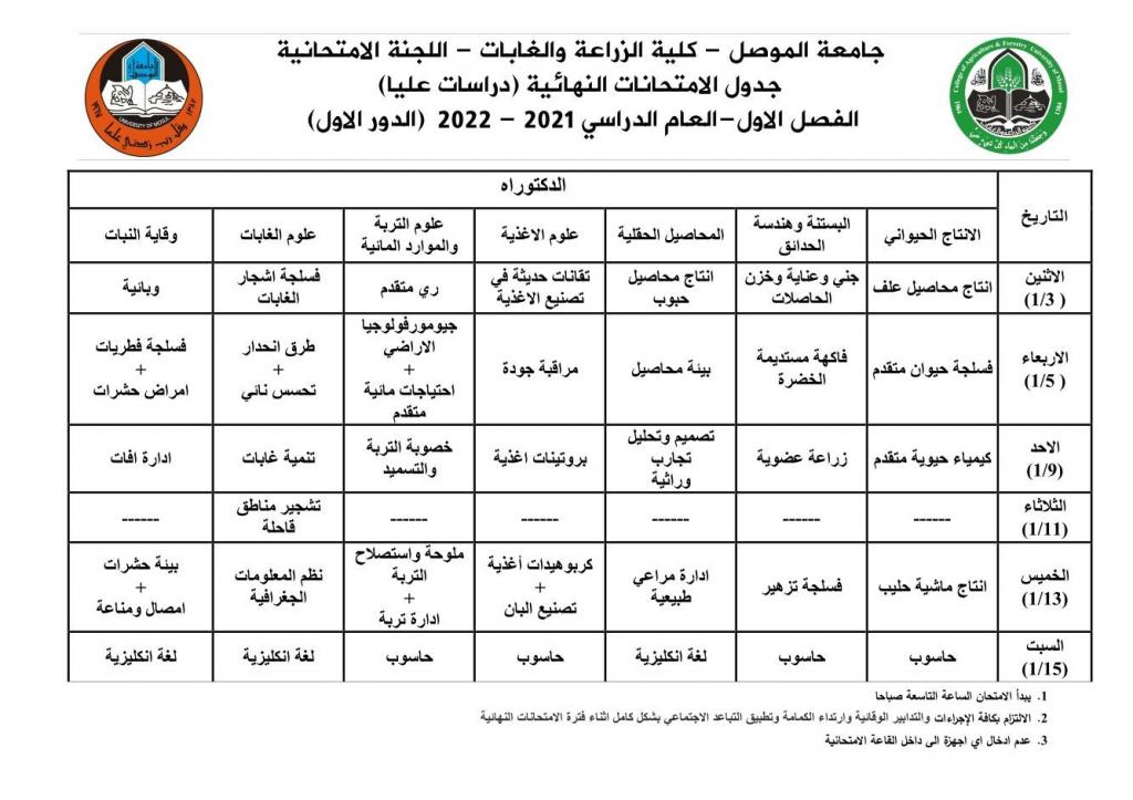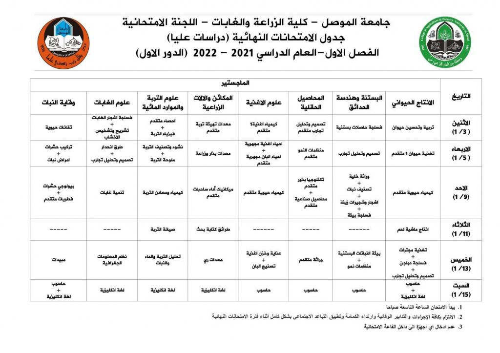 اعلان جداول الامتحانات النهائية لطلبة الدراسات العليا.