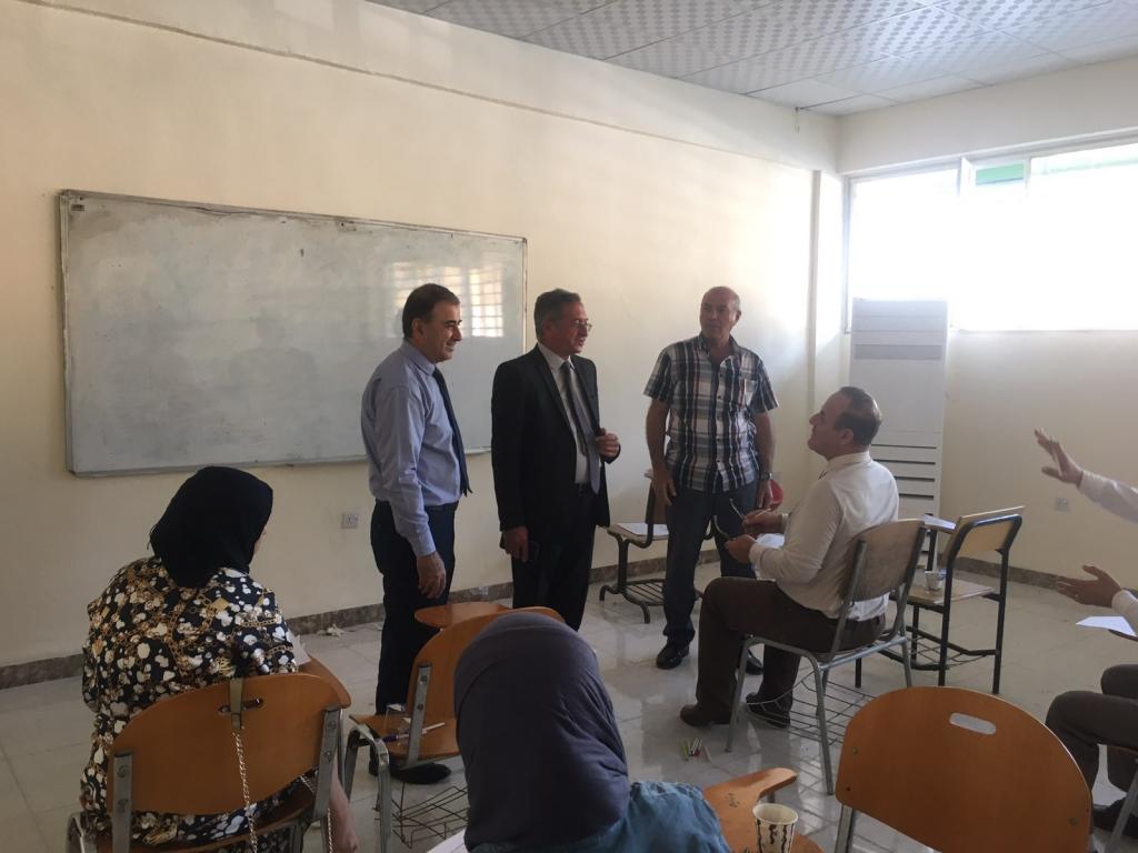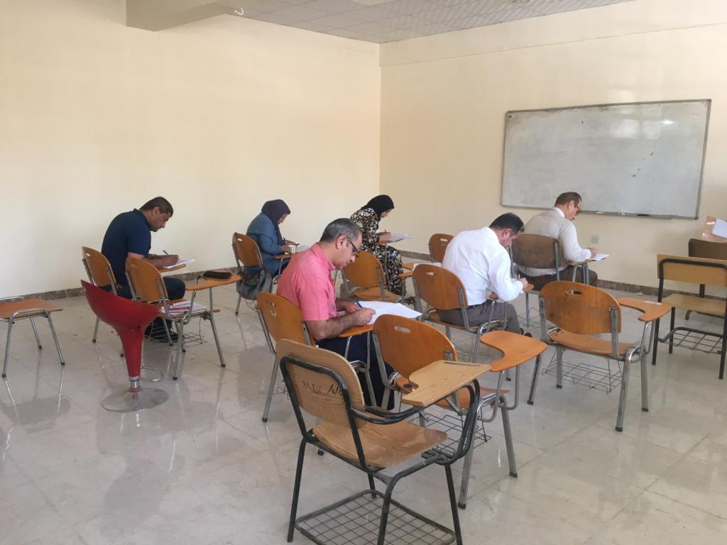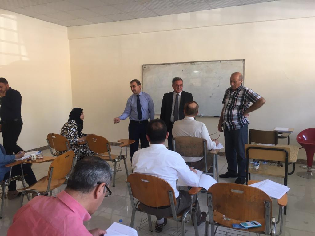 ضمن متابعته الكريمة لاجواء سير الامتحان الشامل لطلبة الدكتوراه في اقسام الكلية زار السيد العميد الدكتور سهل كوكب الجميل يرافقه معاونه العلمي الدكتور بسام يحيى القاعة الامتحانية لطلبة الدكتوراه في قسم الغابات حيث اطلع على سير الامتحان واجوبة الطلبة متمنيا لهم التوفيق والنجاح