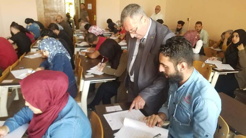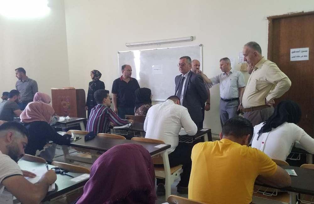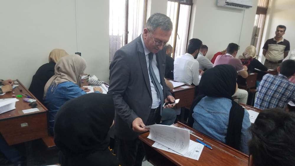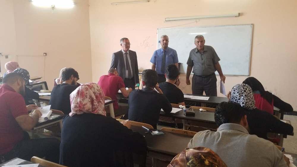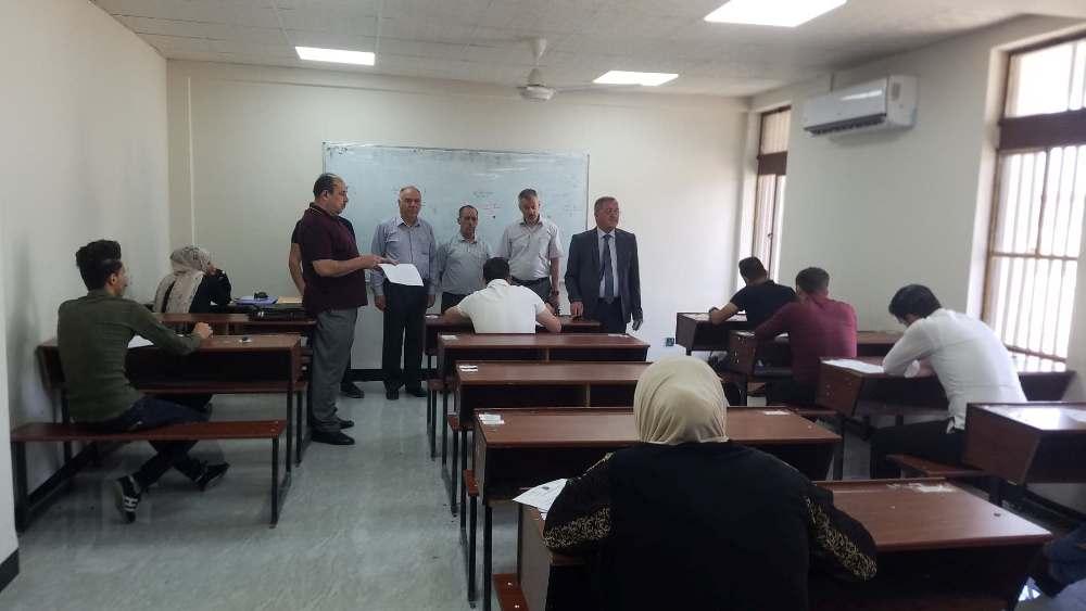 تزامنا مع بدء الامتحانات النهائية للفصل الدراسي الربيعي لطلبة كليتنا قام السيد عميد الكلية الدكتور سهل كوكب الجميل يرافقه معاونيه للشؤون العلمية والإدارية والسيد رئيس اللجنة الامتحانية بجولة تفقدية للقاعات الامتحانية للإطلاع على آلية سير الامتحانات والخدمات المقدمة للطلبة الممتحنين، والتقى السيد العميد ضمن جولته مدراء القاعات الامتحانية مؤكدا ضرورة تهيئة و توفير أفضل الأجواء للطلبة بالقاعات الامتحانية كما ركز على توفير المناخات النفسية المناسبة للطلبة و الالتزام بالتعليمات الامتحانية ، و تطرق إلى تكثيف جميع جهود و إمكانيات الكلية في هذا الوقت لتصب في إنجاح العملية الامتحانية.وأجرى السيد عميد الكلية عدد من اللقاءات مع الطلبة مستفسراً عن طبيعة أسئلة الأمتحانات وعن الخدمات المقدمة و المعاملة الخاصة داخل القاعات الأمتحانية . حيث تحرص عمادة الكلية على توفير كل ما لديها في سبيل انجاح هذه المرحلة الهامة من خلال تامين كافة المتطلبات الضرورية لكي ينعم الطالب بمناخ هادئ و أجواء مثالية .
