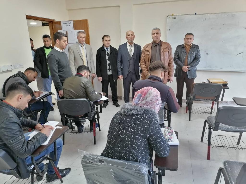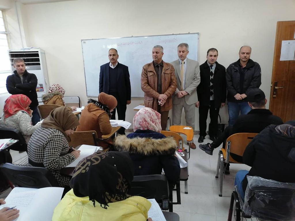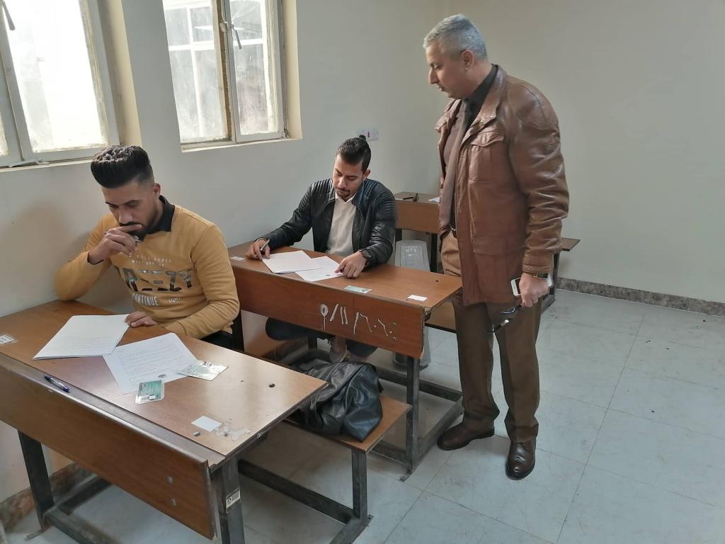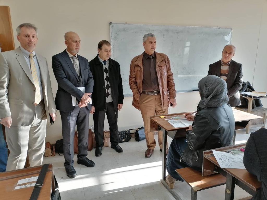 تفقد الأستاذ المساعد الدكتور محمد يونس العلاف عميد الكلية يرافقه معاونيه للشؤون العلمية والادارية صباح اليوم القاعات الامتحانية للأقسام العلمية لتفقد سير الامتحانات النهائية للدور الأول للعام الدراسي 2019- 2020, وذلك للوقوف على سير أجواء الامتحانات والاطلاع على توفير كافة المستلزمات التي تضمن سير الامتحانات بيسر وتذليل كافة المعوقات من اجل انجاح العملية الامتحانية ،وقد أطلع السيد العميد على حجم الخدمات المقدمة للطلبة وتوفير الاجواء المناسبة لهم بالإضافة الى استفساره عن طبيعة الاسئلة ومدى انسجامها مع المستوى العلمي.وقد رافق السيد العميد في زيارته السيد رئيس اللجنة الامتحانية الدكتور هيثم محي الدين والسيد مسؤول الاعلام والعلاقات العامة في الكلية