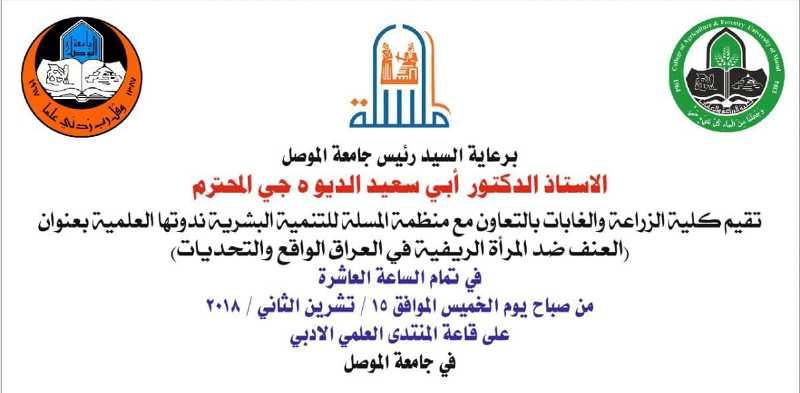 ضمن متابعته المستمرة للنشاطات العلمية لاقسام الكلية حضر السيد العميد الدكتور سهل كوكب الجميل جانب من مناقشة رسالة الماجستير لطالب الدراسات العليا في قسم المكننة والآلات الزراعية فاروق دواس محمود عن رسالته الموسومة (دراسة تاثير عمر وضغط اطار الساحبة الخلفي عند اعماق حراثة مختلفة في بعض مؤشرات الاداء باستخدام المحراث القرصي القلاب) وقد تألفت لجنة مناقشة الطالب من السادة:أ. د. سعد عبد الجبار اسمير/ مكائن والآلات زراعية / كلية الزراعة والغابات / جامعة الموصل / رئيسا.م.د. عبد المجيد حبيب حمود / مكائن والآلات زراعية / المعهد التقني الزراعي / الموصل / عضوا.م.د. منتصر خيري حسين / مكائن والآلات زراعية / كلية الزراعة والغابات / جامعة الموصل / عضوا.أ.م.د. اركان محمد امين صديق / مكائن والآلات زراعية / كلية الزراعة والغابات / جامعة الموصل / عضوا ومشرفا.وبعد مناقشة الطالب لرسالته اوصت اللجنة بمنحه شهادة الماجستير .إدارة موقع الكلية تبارك للطالب حصوله على الشهادة متمنين لهالتوفيق والنجاح في حياته العلمية والعملية.