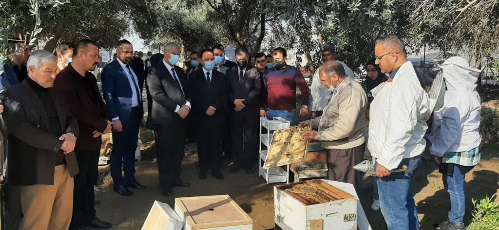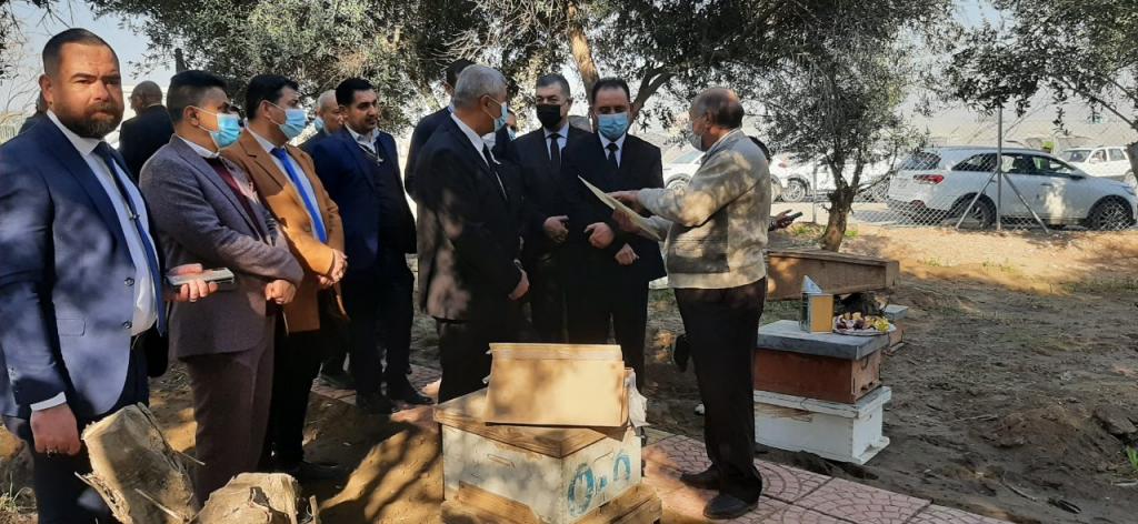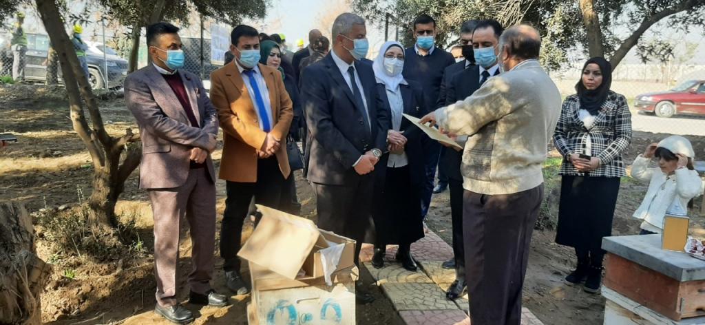 السيد رئيس الجامعة يفتتح منحل الكلية التابع لقسم وقاية النبات