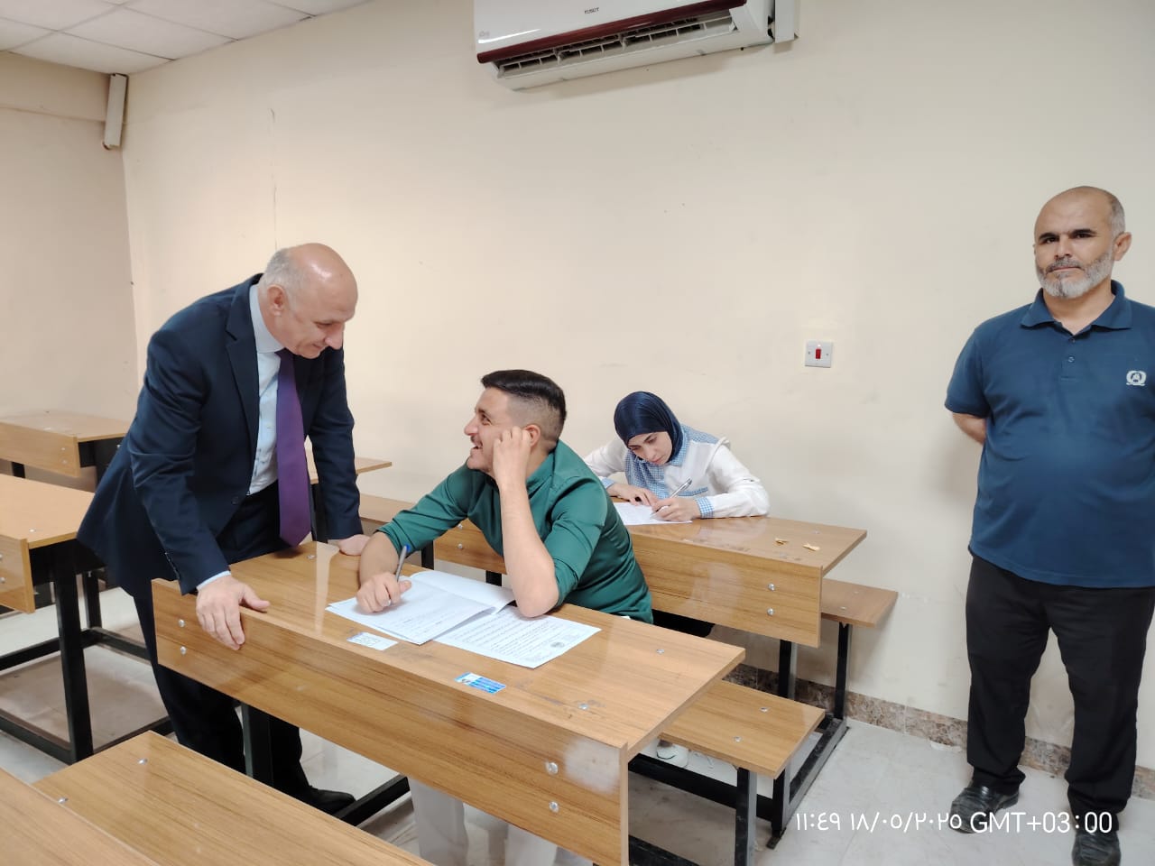 السيد رئيس جامعة الموصل يزور كليتنا ويطلع على سير الامتحانات النهائية لطلبة الدراسات الأولية.