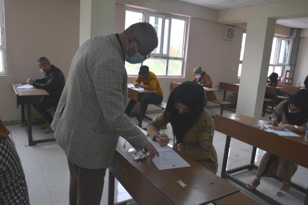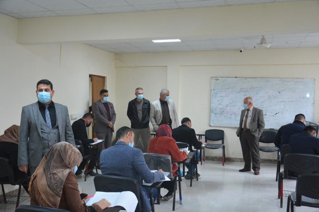 تفقد السيد عميد الكلية الدكتور محمد يونس العلاف بمعية معاونيه للشؤون العلمية والادارية والسيد رئيس اللجنة الامتحانية اليوم بدء الامتحانات النهائية للفصل الدراسي الأول لطلبة الدراسات العليا في كليتنا والتي جرت حضورياً في القاعات الامتحانية.