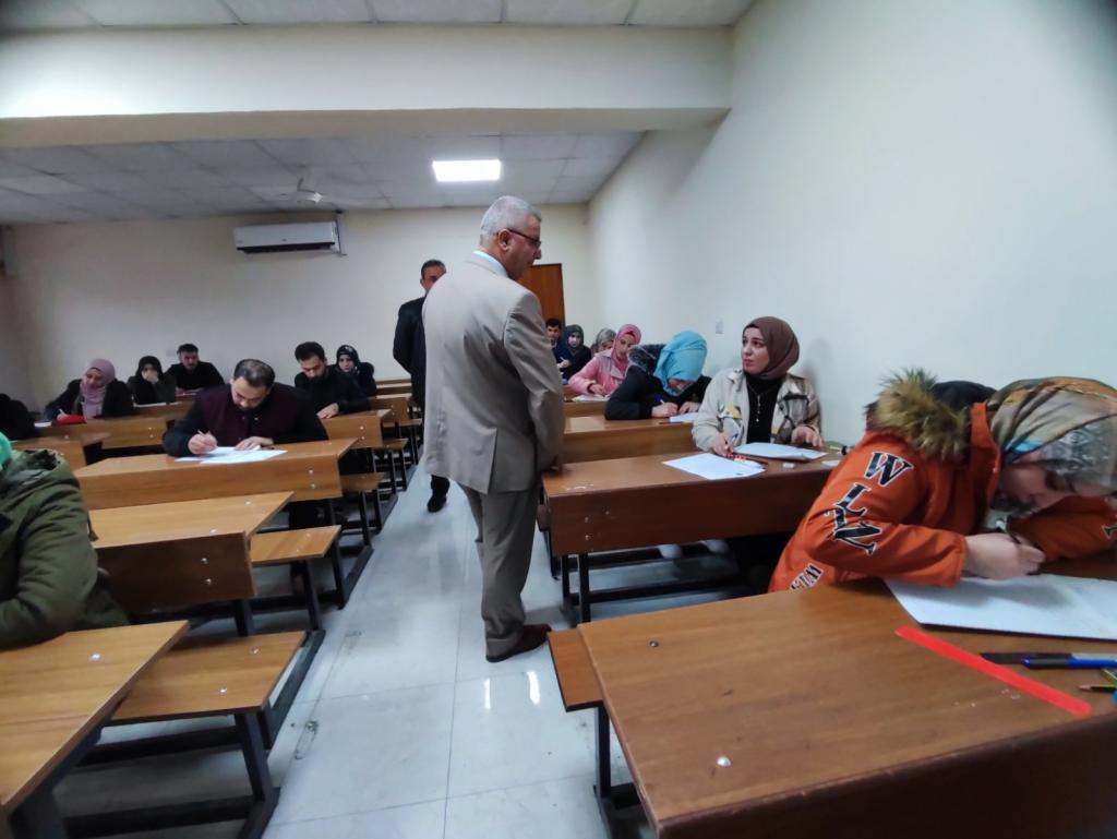 السيد عميد الكلية يتفقد بدء امتحانات طلبة الدراسات العليا.