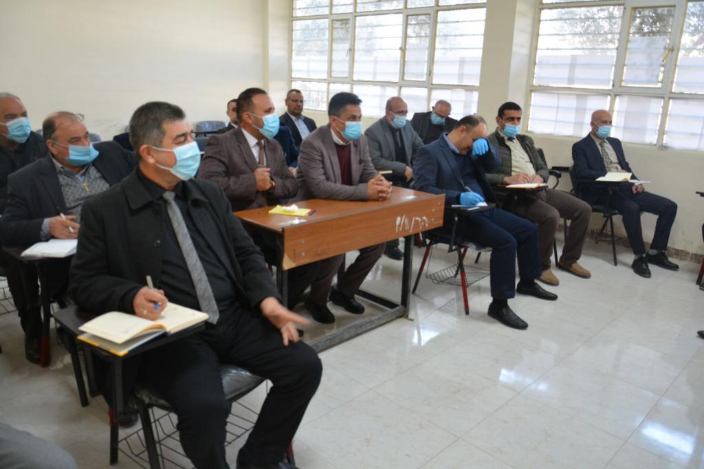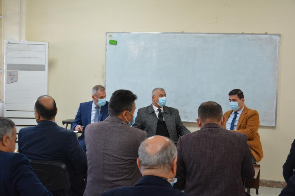 اجتمع السيد عميد الكلية الاستاذ المساعد الدكتور محمد يونس العلاف بحضور معاونيه للشؤون الادارية والعلمية واعضاء مجلس الكلية باعضاء اللجنة المركزية للدراسات العليا والاولية ، وتطرق الاجتماع إلى الاستعدادات التي تجريها اللجنة الامتحانية لهذا العام استنادا إلى توجيهات وزارة التعليم العالي والبحث العلمي ورئاسة جامعة الموصل وكذلك توزيع المهام ووضع جدول زمني بإكمال كل النواقص والتأكيد على الدقة والعمل الجماعي خاصة في ظل ظروف جائحة كورونا والحرص على تنفيذ شروط السلامة العامة والتباعد الاجتماعي حرصا على سلامة ابناءنا الطلبة .