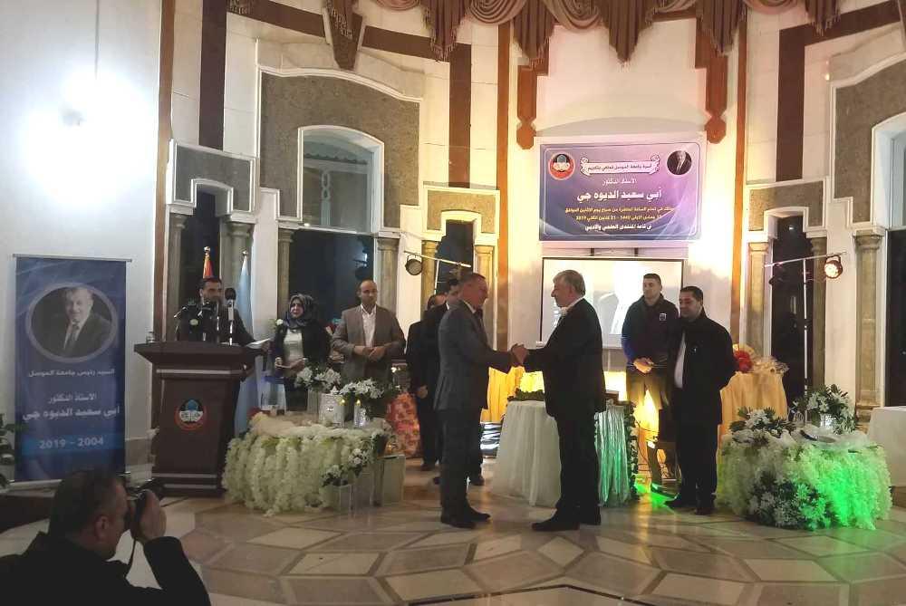 حضر السيد عميد الكلية الدكتور سهل كوكب الجميل اليوم الاحتفالية التي اقامتها رئاسة جامعة الموصل في المنتدى العلمي الادبي لتكريم قامة من قامات وأعلام الجامعة ومدينة الموصل الاستاذ الدكتور أبي سعيد الديو ه جي المحترم وذلك عرفاناً وتقديراًلما بذله من جهد دوؤب وعمل مخلص وعطاء متميز خلال رئاسته لجامعة الموصل امتدت لأربعة عشر عاما مما ساهم فى الارتقاء بمستوى الجامعة بين الجامعات العراقية .وحضر الاحتفالية الاستاذ الدكتور قصي الاحمدي رئيس جامعة الموصل وعدد من رؤساء الجامعات والسادة اعضاء مجلس جامعة الموصل والأساتذة المتمرسين في الجامعة وجمع غفير من الضيوف ، وتخلل الاحتفالية عدد من الكلمات التي عبرت عن تقديرها لمسيرة الدكتور الديو ه جي العلمية وجهوده الكبيرة في قيادة الجامعة في اصعب الظروف والاوقات ، حيث ثمن الاستاذ الدكتور قصي الاحمدي جهود الاستاذ الدكتور ابي سعيد ودوره الكبير في تطوير الجامعة وانه كان وسيبقى نموذجاً للعالم والإداري والباحث المبدع التي خدم الجامعة ومنتسبيها الكرام داعيا الى الله ان يحفظه ويطيل في عمره .من جانبه عبر الاستاذ الدكتور ابي سعيد الديو ه جي عن سعادته الكبيرة بهذا الحفل ، موجهاً شكره وتقديره لمنتسبي الجامعة من الهيئات الأكاديمية والإدارية مستعرضاً مراحل هامة في مشواره الأكاديمي والعملي والعلمي، مشدداً على أن العملية الأكاديمية يجب أن تكون الهدف الأول في أي مؤسسة تعليمية فهي قارب النجاة الوحيد لديمومة وجود وتطور هذه المؤسسة.