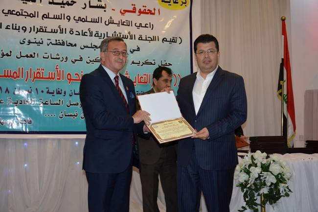 شارك السيد عميد كلية الزراعه والغابات الدكتور سهل كوكب الجميل عضو اللجنة الاستشارية للسلام وإعادة الاستقرار في محافظة نينوى والمنبثقة من رئاسة مجلس المحافظة في مؤتمر التعايش السلمي وإعادة الاستقرار في محافظة نينوى والذي انعقد للمدة من 3 لغاية 10 نيسان 2018 وفي قاعة المؤتمرات بجامعة دهوك برعاية الأستاذ بشار حميد الكيكي رئيس مجلس المحافظة وبحضور السيد محافظ نينوى والأستاذ عصمت رجب مسؤول الفرع 14 للحزب الديمقراطي الكردستاني وجمع غفير من المثقفين ورؤساء العشائر ورؤساء الطوائف المسيحية واليزيدية في المحافظة.