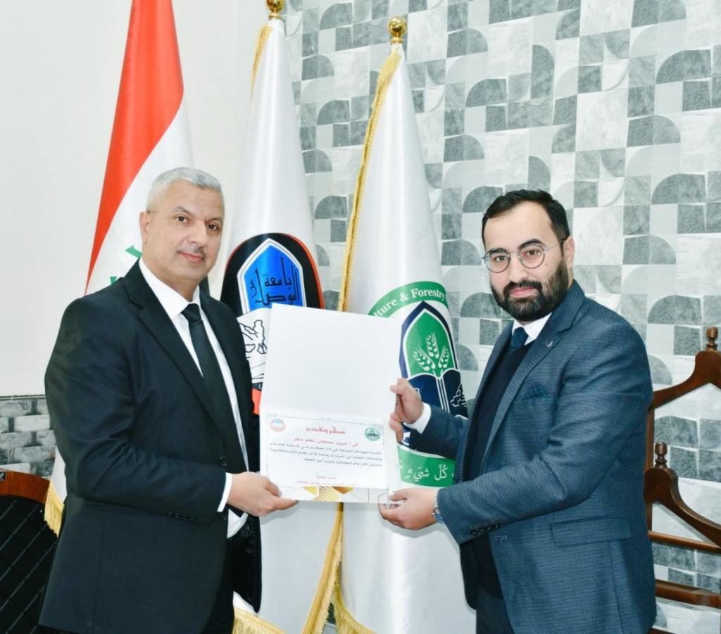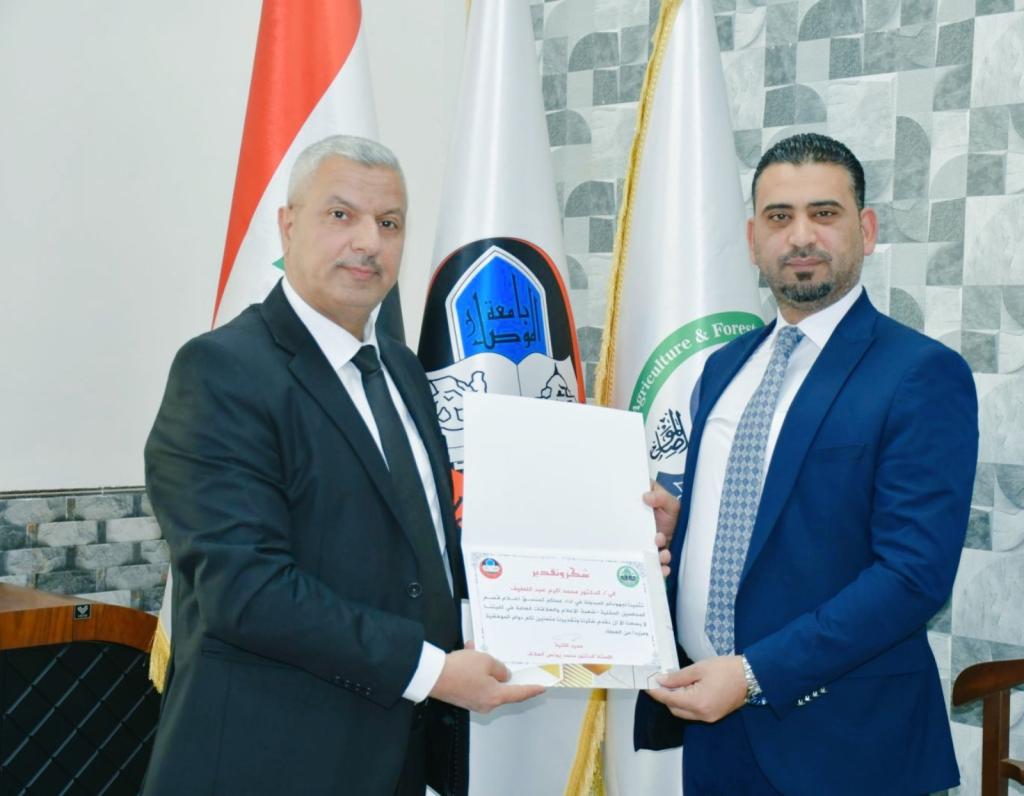 كرم السيد عميد الكلية الاستاذ الدكتور محمد يونس العلاف كل من الدكتور محمد اكرم منسق إعلام قسم المحاصيل الحقلية والمدرس المساعد مصطفى ناظم قبع المنتسب لشعبة الإعلام والعلاقات العامة في كليتنا وذلك لجهودهما في تغطية نشاطات منتسبي وطلبة كليتنا على مواقع التواصل الاجتماعي والموقع الالكتروني لكليتنا.