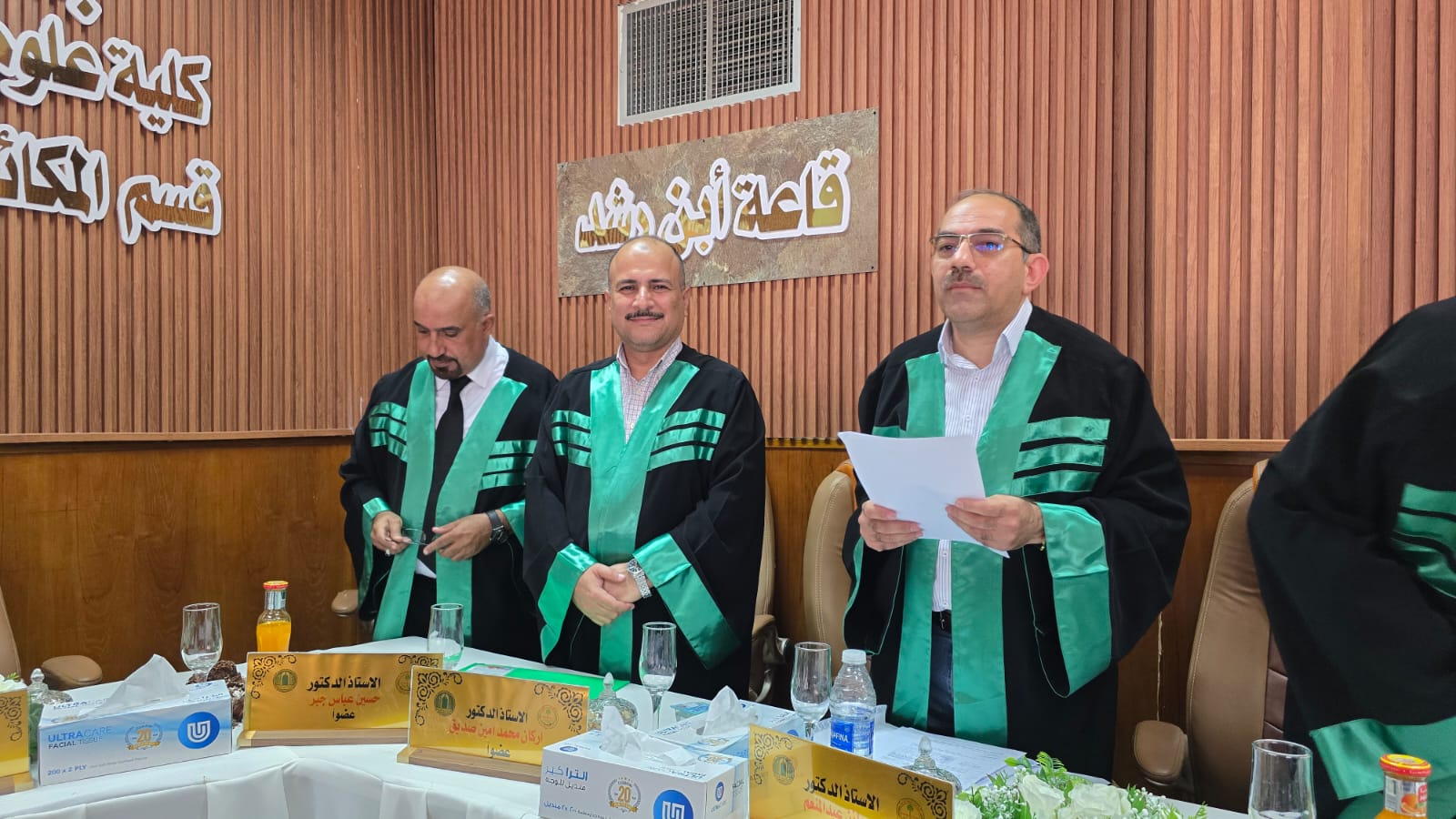 السيد معاون العميد للشؤون الإدارية والمالية عضوا في لجنة مناقشة أطروحة دكتوراه في جامعة بغداد.