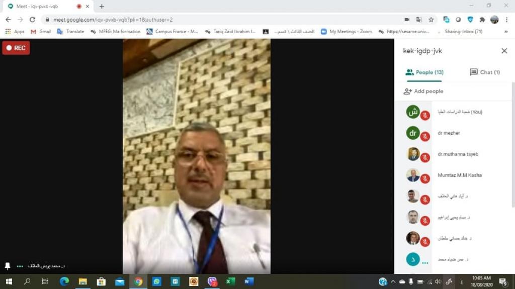 بحضور السيد عميد الكلية الدكتور محمد يونس العلاف ومعاونه العلمي وعبر الفضاء الالكتروني نوقشت في كليتنارسالة ماجستير في قسم الانتاج الحيواني للطالب نوفل عبد الغني محمد في رسالته الموسومة (تأثير تجريع الزنك وفيتامين E على الاداء الانتاجي وخصائص الذبيحة في الحملان العواسية ) وقد تألفت لجنة المناقشة من السادة :