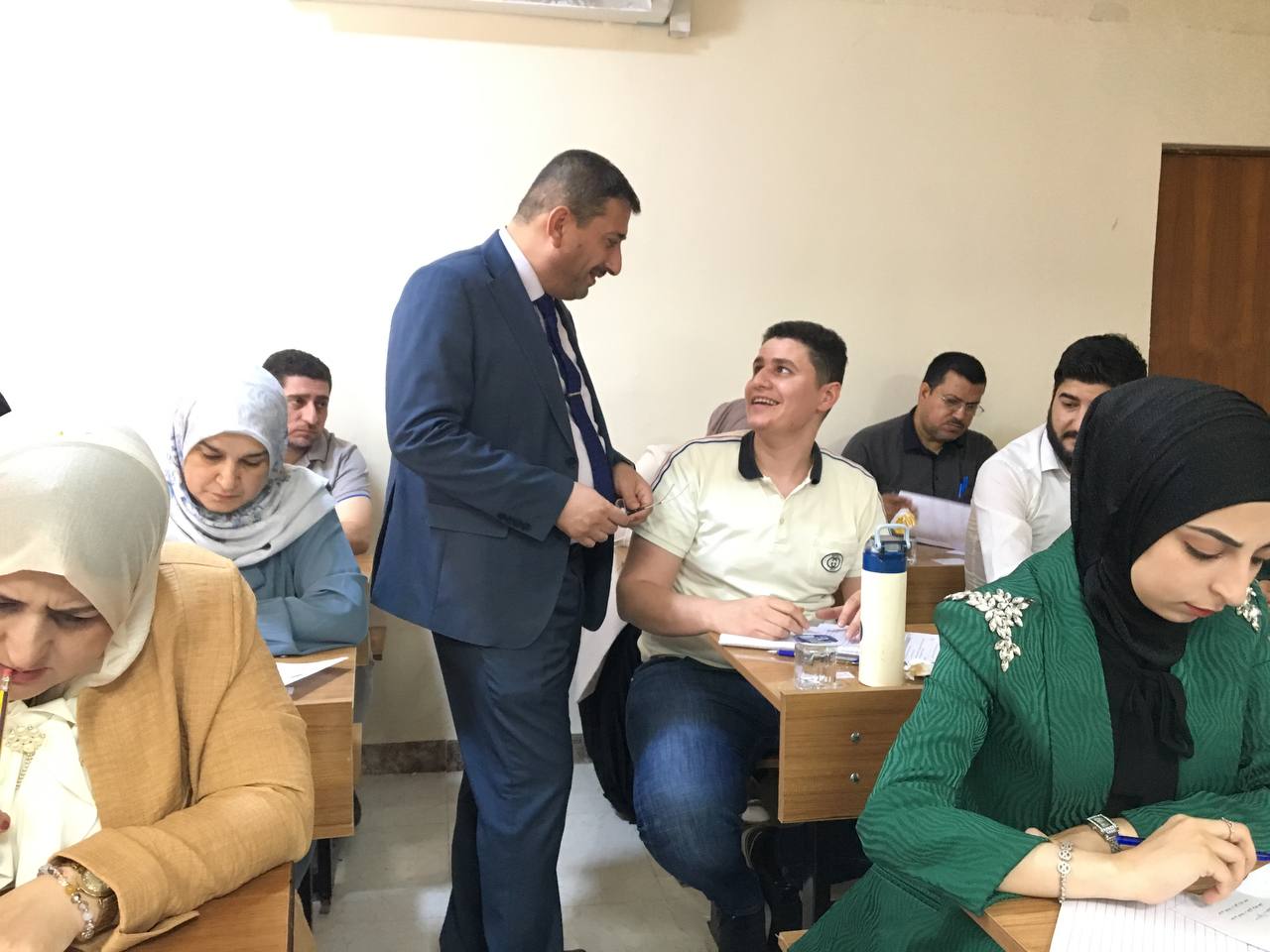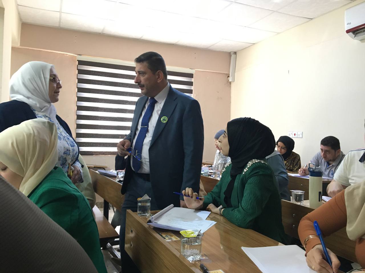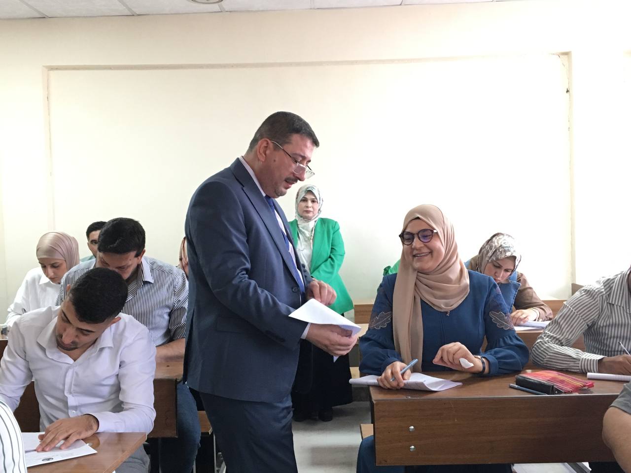 الاستاذ الدكتور علي فاروق المعاضيدي برفقة رئيس اللجنة الامتحانية الاستاذ الدكتورة جهينة ادريس القاعات الامتحانية واطلع على سير العملية الامتحانية ومدى مراعاة الأسئلة الامتحانية لمستويات الطلبة والوقت المحدد لها ومدى شموليتها مؤكداً على توفير جميع الظروف الملائمة للطلبة لتحقيق التفوق والنجاح.