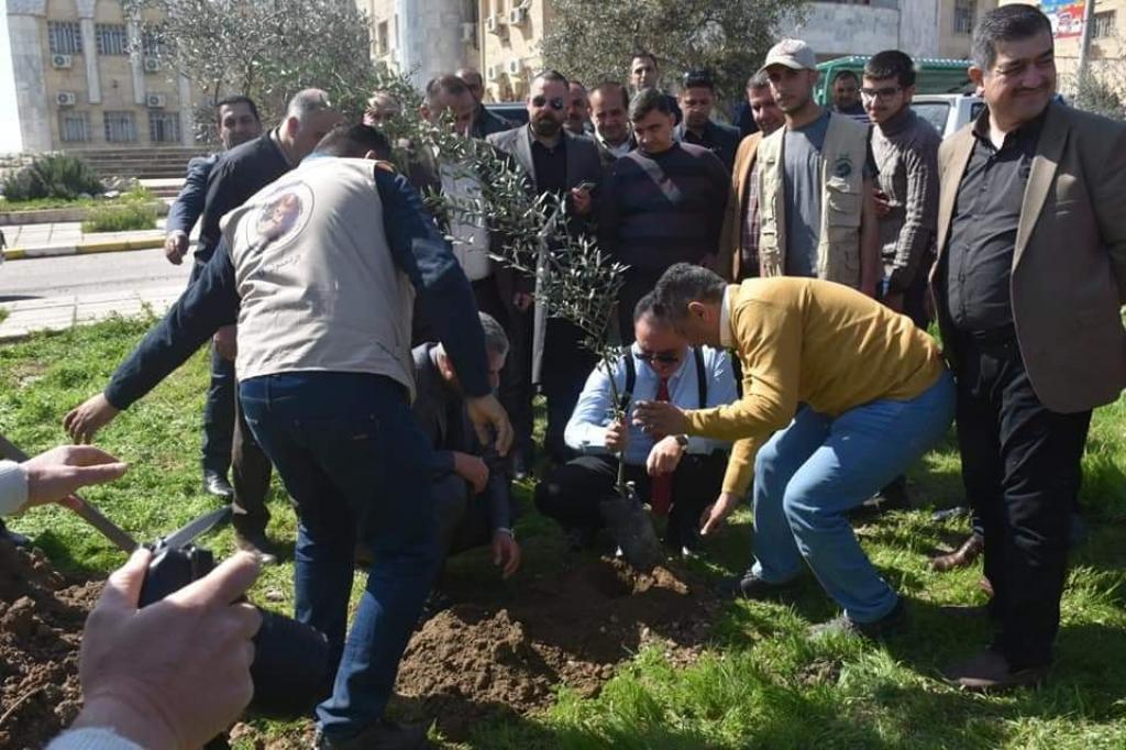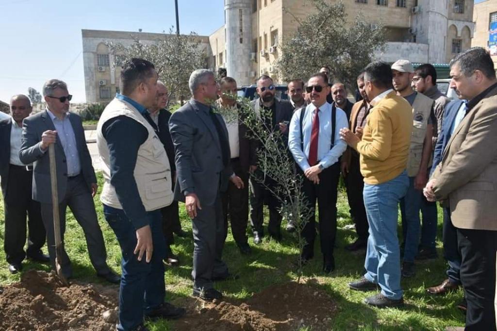 بمشاركة كريمة من السيد رئيس الجامعة .. زراعة اكثر من 400 شتلة زيتون في بستان الكلية