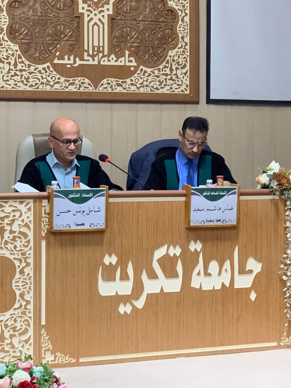 تدريسي من كليتنا عضوا في لجنة مناقشة أطروحة دكتوراه في جامعة تكريت.