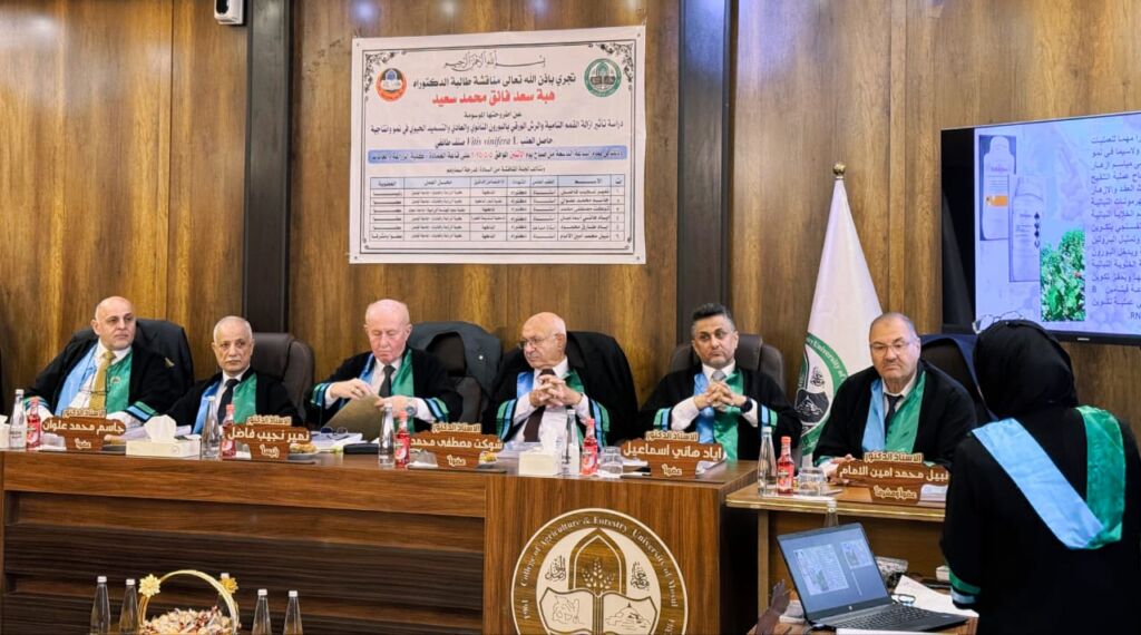 ضمن النشاطات العلمية لتدريسي كليتنا ترأس الاستاذ الدكتور فاضل فتحي رجب التدريسي في قسم البستنة وهندسة الحدائق في كليتنا لجنة مناقشة أطروحة دكتوراه في قسم علوم الحياة في كلية العلوم جامعة زاخو للطالب صالح فرحان اسماعيل عن أطروحته الموسومة ( (Efect of seaweed Extracts, Humic acid and organic Manure on Growth and Yield of broccol(Brassica oleracea var. ltalica L.) Grown in plastic House)